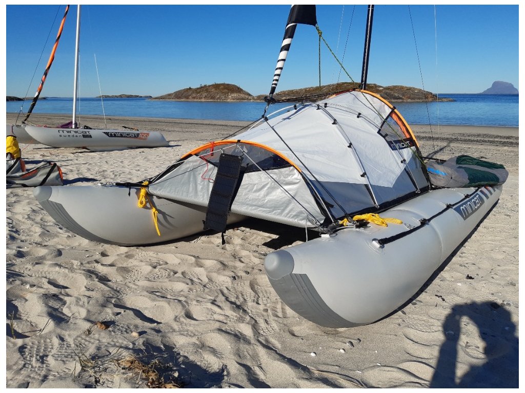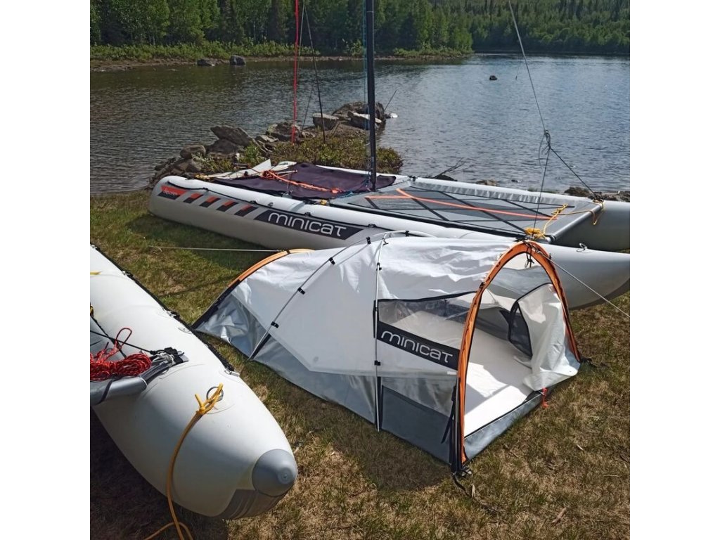 Jedinečný nafukovací katamarán složitelný do tašky. Můžete jej jednoduše přepravovat v autě, v letadle či ve vašem karavanu.